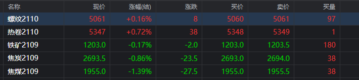 受此影響,期鋼午后漲幅急速收縮,期螺上漲8收?qǐng)?bào)5061,期卷上漲38收?qǐng)?bào)5347,鐵礦石下跌2收?qǐng)?bào)1203,焦煤下跌27.5收?qǐng)?bào)1955,焦炭下跌23.5收?qǐng)?bào)2693.5。