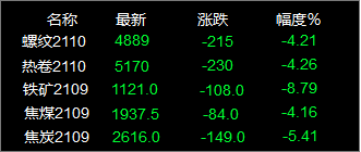 6月進入下旬,鋼價延續(xù)跌勢,今日期鋼跌幅持續(xù)擴大,受國家發(fā)改委與市場監(jiān)管總局聯(lián)合調(diào)研鐵礦石現(xiàn)貨市場交易相關(guān)消息影響,鐵礦石領(lǐng)跌黑色系,現(xiàn)貨報價進一步下探。期鋼大跳水超200,跌幅超預(yù)期。期螺下跌215收報4889,期卷下跌230收報5170,鐵礦石下跌108收報1121,焦煤下跌84收報1937.5,焦炭下跌149.5收報2616。唐山鋼坯昨日下調(diào)50元,現(xiàn)報4850元/噸,網(wǎng)優(yōu)廢鋼統(tǒng)計21日3漲72跌,今早0漲77跌。