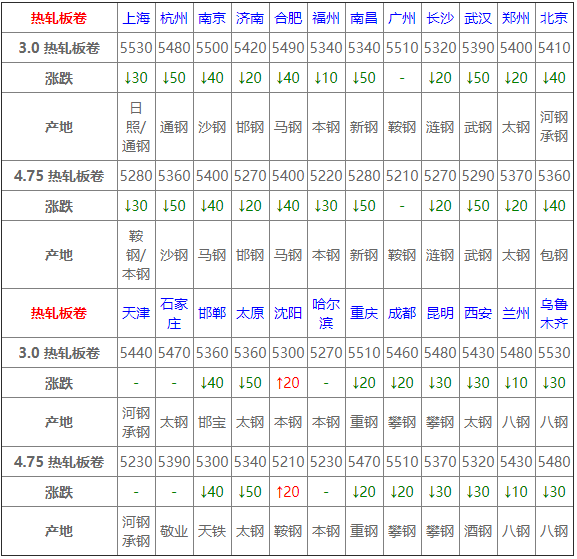 今全國(guó)熱卷價(jià)格主流下調(diào),市場(chǎng)偏弱調(diào)整,幅度在20-50元左右,商戶出貨為主,降低庫存;下跌趨勢(shì)未改;