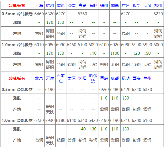 6月23日冷軋板卷價(jià)格:穩(wěn)中下調(diào);