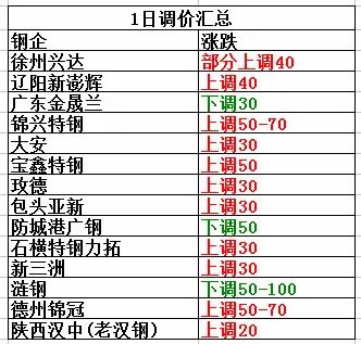 7月1日錦興特鋼廢鋼上調50-70:15厚精廢3500,10厚重廢3470,8厚重廢3420,6-8厚中廢3370,4-6厚輕薄料3240-3270,大車弓片3470,大車前后橋、差速器3390,大車鋼圈3430變速箱、發動機、機體3240-3270外地大掛車另加價。