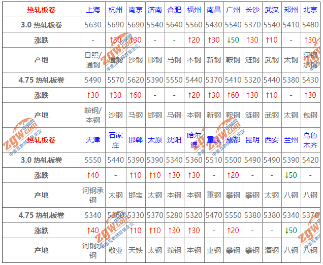 7月1日鋼鐵價格漲跌圖:主流小漲 7月1日建材價格:小幅上調(diào); 今建材價格堅挺運(yùn)行,據(jù)市場反饋,目前處于需求淡季,周邊主導(dǎo)市場庫存已開始小幅累庫。另外,節(jié)日期間,受部分工地停工以及運(yùn)輸車輛停運(yùn)等影響,下游采購量有所影響。綜合來看,短期建材價格盤整運(yùn)行。 2 7月1日熱軋板卷價格:以漲為主; 今熱軋板卷價格小漲,今日早盤期貨市場震蕩偏強(qiáng),現(xiàn)貨市場心態(tài)稍好,商家報價小幅上漲,市場成交整體一般。總體來看,目前需求整體偏弱,成交難有明顯改善,商家多持觀望態(tài)度。預(yù)計短期內(nèi)熱卷市場維持震蕩運(yùn)行。 3 7月1日冷軋板卷價格:穩(wěn)中調(diào)整; 今冷軋板卷價格穩(wěn)中運(yùn)行,市場主流以穩(wěn)價出貨為主,市場庫存累積數(shù)量較大,下游客戶采購意愿低,預(yù)計冷軋市場穩(wěn)中偏強(qiáng)運(yùn)行; 4 7月1日中厚板價格:漲跌都有; 今中板價格小幅調(diào)整。期貨主力震蕩上揚(yáng),現(xiàn)貨交投各異,整體改善不明顯,盤中松動出貨,考慮周邊有所企穩(wěn),預(yù)計短期觀望整理; 5 7月1日熱帶價格:上行為主; 今熱帶市價上行為主,據(jù)了解,北方窄帶主流漲20-30,整體成交平平,中寬帶則是漲后成交不佳偏弱調(diào)整,且調(diào)坯廠和架子管廠今晚后陸續(xù)復(fù)產(chǎn),明日北方或堅挺為主。考慮成本端堅挺,故預(yù)計短期帶鋼價格或穩(wěn)中整理 6 7月1日型材價格:持穩(wěn)運(yùn)行; 今型價趨強(qiáng)調(diào)整。成本支撐仍存,廠商盼漲心理趨濃,市場成交氛圍向好,然下游參市積極性不高,短期型價將低位高靠。 7 7月1日管材價格:持穩(wěn)運(yùn)行; 今管材價格持穩(wěn)運(yùn)行,成交一般。成本端堅挺上漲,環(huán)保停產(chǎn)停運(yùn),廠商近幾日幾乎不出貨,訂單稀少,預(yù)計明日開工,廠商心態(tài)多隨行就市。因此預(yù)計后市焊管市場或?qū)⒄鹗庍\(yùn)行。