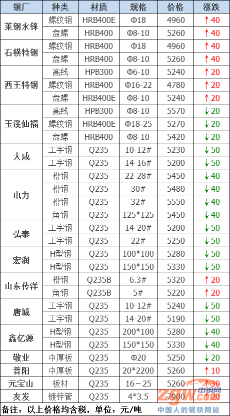 2021年7月5日鋼廠調價通知::調價:漲40!跌50!25家鋼廠調價來了!