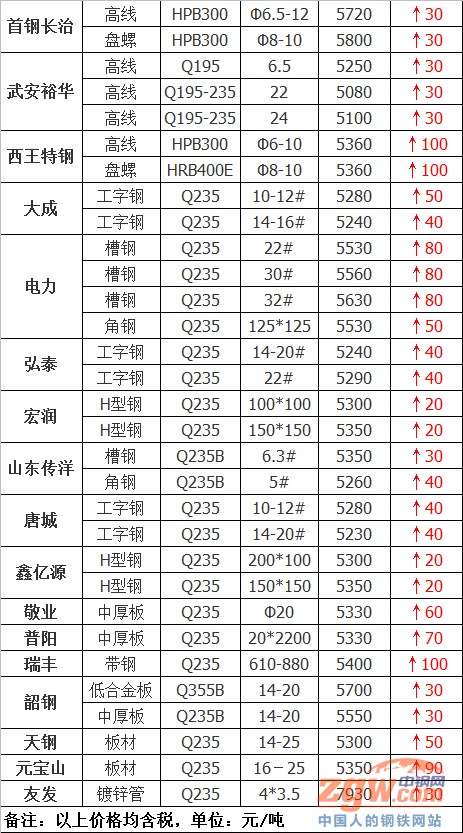 2021年7月6日鋼廠調價通知::調價:漲100!31家鋼廠最新調價!