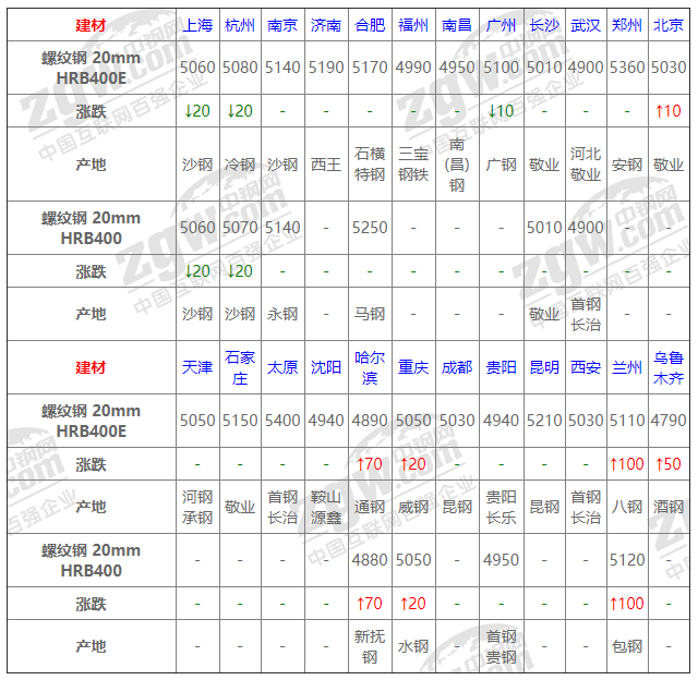 7月9日鋼鐵價格漲跌圖:主穩個調