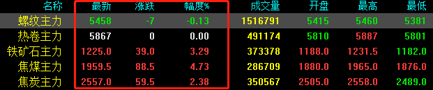 今日期鋼震蕩調(diào)整,期螺收盤(pán)下跌7報(bào)5458,期卷持穩(wěn)報(bào)5867,鐵礦石上漲39收?qǐng)?bào)1225,焦煤上漲88.5收?qǐng)?bào)1959.5,焦炭上漲59.5收?qǐng)?bào)2557。