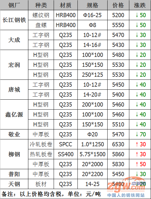 據數據監測,今日共15家鋼廠調價,其中漲幅最高為柳鋼中厚板,調價幅度50元/噸,跌幅最大為敬業中厚板,調價幅度70元/噸,具體調價明細如下: 鋼廠調價 西王特鋼建材價格平穩 山西美錦建材價格平穩 石橫特鋼建材價格平穩 萊鋼永鋒建材價格平穩 長江鋼鐵建材下調50元/噸 電力型材價格平穩 山東傳洋型材價格平穩 宏潤H型鋼下調20元/噸 唐城工字鋼下調40元/噸 大成工字鋼下調30元/噸 鑫億源H型鋼下調40元/噸 柳鋼板材上調30-50元/噸 天鋼板材下調20元/噸 敬業中厚板下調70元/噸 普陽中厚板下調30元/噸 鋼廠調價占比 上調1家,占比6.7%,調價幅度30-50元/噸。 下調8家,占比53.3%,調價幅度20-70元/噸。 平穩6家,占比40%。