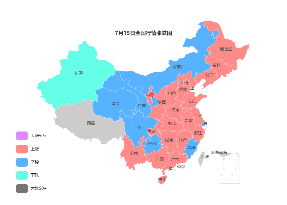7月15日鋼鐵價格漲跌圖:穩(wěn)中上漲 7月15日建材價格:穩(wěn)中上漲; 今建材穩(wěn)中上漲,幅度10-60,高位成交較為清淡。近期成交清淡,但是價格依舊盤整走強,庫存處于小幅累庫狀態(tài),銷售壓力整體偏弱,因此貿易商心態(tài)謹慎樂觀。綜合來看,需求依舊處于淡季,市場供應相對應減少,預計近期價格或暫穩(wěn)運行; 2 7月15日熱軋板卷價格:主流上行; 今全國熱卷主流上行,幅度10-60,期卷持紅上行,提振現(xiàn)貨市場,商戶挺價意愿頗高,然市場交投氛圍偏空,商戶整體出貨不暢;