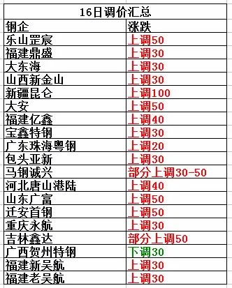 7月16日吉林鑫達部分上調50:重型3560,優(yōu)質3520,重A3420,重B3310,重廢4-6厚2870,重廢2-4厚2770,生熟混合料4-6個厚2920,2-4個厚2820,鋼筋切頭3750,破碎料一級3420,破碎料二級3320,123剪切料3180。
