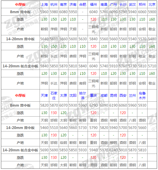 今全國中板漲跌均現,幅度10-60,受河南河北地區強降雨天氣影響市場心態偏空,成交表現寥寥,商家隨行低靠出貨;