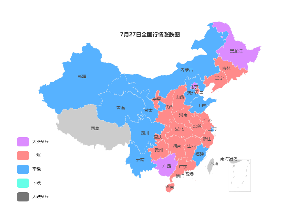 7月27日鋼鐵價格漲跌圖:主流上漲