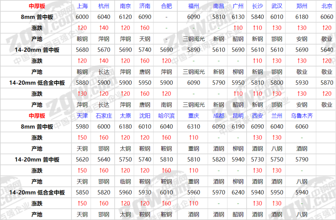 今全國中板穩中偏強,上調幅度10-60左右,黑色系期貨持紅震蕩,提振市場信心,商家報價小幅探漲,然終端需求拿貨顯謹慎,整體成交一般;