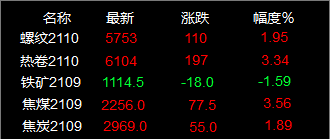 昨日國(guó)內(nèi)商品期貨收盤(pán)多數(shù)上漲,黑色系漲幅居前大幅拉漲,焦煤期貨主力收盤(pán)大漲近4%;熱卷期貨主力收盤(pán)大漲近3.5%,價(jià)格創(chuàng)出近兩個(gè)月新高;期螺低開(kāi)高走,盤(pán)中震蕩上移,最終和焦炭收盤(pán)大漲近2%;鐵礦石逆勢(shì)跌近1.6%。截至收盤(pán),期螺上漲110收?qǐng)?bào)5753,期卷上漲197收?qǐng)?bào)6104,焦炭上漲55收?qǐng)?bào)2969,鐵礦石下跌18收?qǐng)?bào)1114.5,焦煤上漲77.5收?qǐng)?bào)2256。唐山鋼坯昨日穩(wěn),今上午上漲30元,現(xiàn)報(bào)5270元/噸。網(wǎng)優(yōu)廢鋼統(tǒng)計(jì)29日30漲17跌,今早13漲13跌。