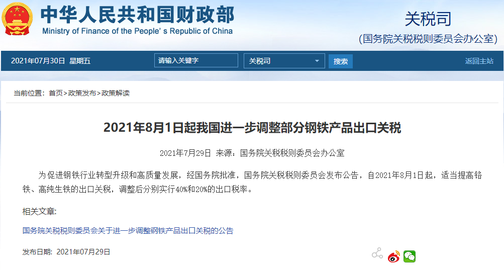 鋼材出口關(guān)稅調(diào)整不及預(yù)期,利空情緒緩解