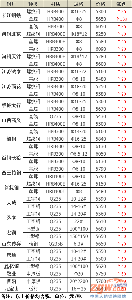 據數據監測,今日共26家鋼廠調價,其中漲幅最高為長江鋼鐵螺紋,調價幅度130元/噸,具體調價明細如下: 鋼廠調價 武安裕華高線價格平穩 石橫特鋼建材價格平穩 萊鋼永鋒建材價格平穩 西王特鋼建材上調20元/噸 山西高義建材上調30元/噸 江蘇雨花建材上調90元/噸 首鋼長治建材上調30元/噸 韶鋼建材價格上調60元/噸 新撫鋼建材上調50-70元/噸 江蘇鴻泰螺紋鋼上調60元/噸 河鋼北京建材上調30-40元/噸 河鋼天津建材上調20-40元/噸 黎城太行建材上調20-30元/噸 長江鋼鐵建材上調80-130元/噸 電力槽鋼價格平穩 電力角鋼價格平穩 宏潤H型鋼上調30元/噸 大成工字鋼上調20元/噸 弘泰工字鋼上調60元/噸 唐城工字鋼上調60元/噸 鑫億源H型鋼上調40元/噸 山東傳洋型材上調40元/噸 天鋼板材價格平穩 元寶山板材上調60元/噸 敬業中厚板上調60元/噸 普陽中厚板上調20元/噸 鋼廠調價占比 上調20家,占比76.9%,調價幅度20-130元/噸。 平穩6家,占比23.1%。 價格簡評 今日鋼廠指導價偏強運行,期貨小幅持紅,鋼企受天氣、疫情等原因影響,原料到貨情況不佳,部分品種供應端偏緊。成交方面,受疫情影響,下游終端客戶多按需補貨,市場大戶根據行情調價,整體出貨一般。然由于環保限產,使得成品庫存持續下降,廠商挺價盼漲意愿強烈。預計短期鋼廠出廠價格堅挺運行。