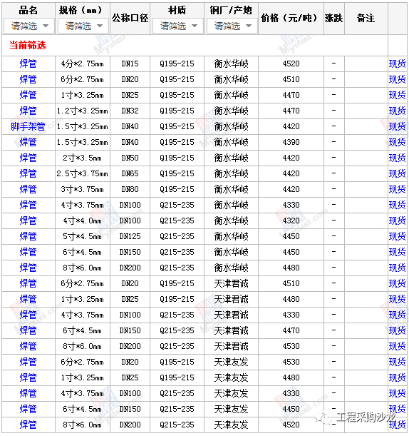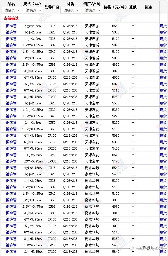 4.如未特別注明,以上表列鋼管價(jià)格為不定尺,如需定尺請(qǐng)自行與貿(mào)易商協(xié)商;