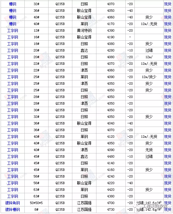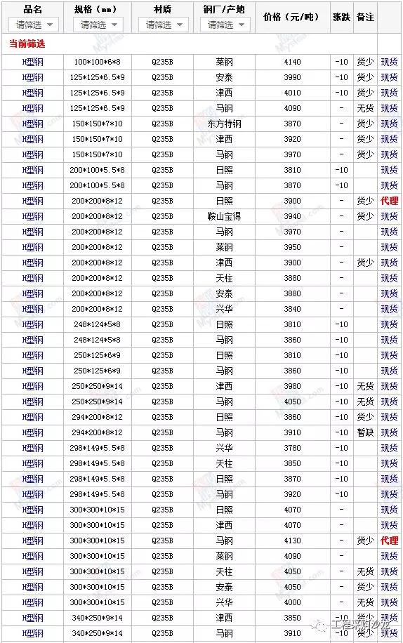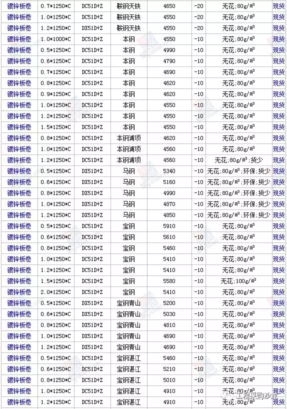 a)如無特殊說明,以上表列卷價(jià)均為過磅,平板均為過磅;