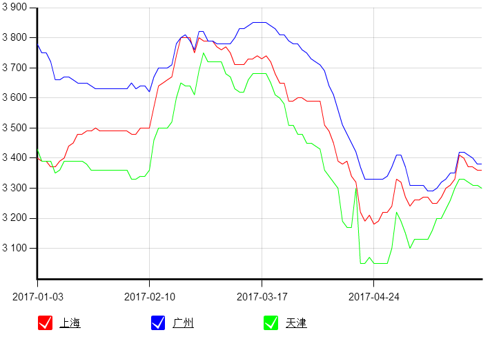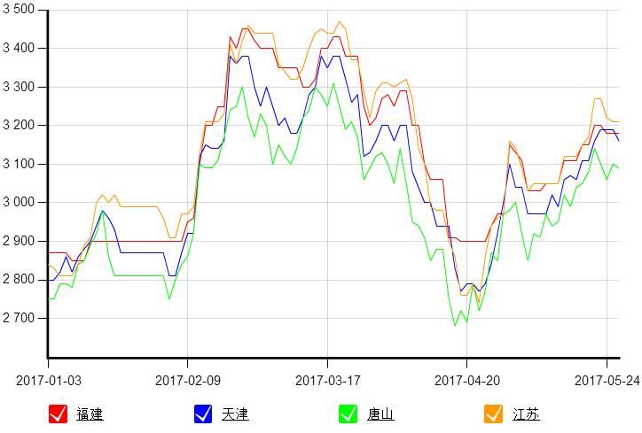 2017年1月1日~5月27日主流品種價(jià)格走勢(shì)