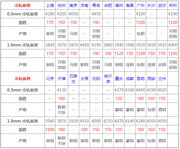 5月18日冷軋板卷價格:拉漲明顯20-100元/噸;
