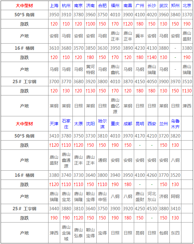 5月18日型材價格:震蕩趨漲10-120元/噸;