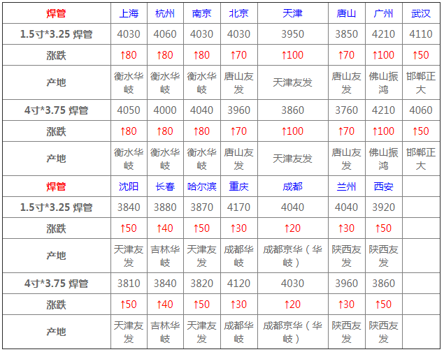 今天管材價格高位運行,周末原料端強勢上漲,管市跟隨補漲,漲后整體交投氛圍一般,高位成交放緩,商家靈活出貨一單一議。考慮限產(chǎn)來襲原料緊缺,市場支撐尚可,預(yù)計后市管材價格堅挺調(diào)整。