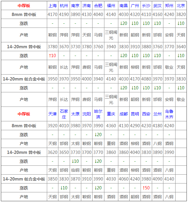5月27日中厚板價(jià)格:穩(wěn)中偏弱; 今中厚板現(xiàn)貨價(jià)穩(wěn)中偏弱,今晨唐山鋼坯繼續(xù)執(zhí)行保價(jià)政策,鋼價(jià)下行阻力較明顯,上午整體成交一般,營(yíng)口資源價(jià)格偏低,今主流3650持穩(wěn),考慮需求一般但商家降價(jià)意愿不高,故綜合以上,預(yù)計(jì)短期內(nèi)中板市場(chǎng)價(jià)格觀望整理運(yùn)行。