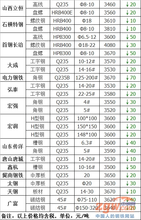 今日統(tǒng)計(jì)的40家鋼廠調(diào)價(jià)中,漲幅最高為福建三鋼,調(diào)價(jià)幅度100元/噸,跌幅最大為電力鋼鐵角鋼,調(diào)價(jià)幅度70元/噸,具體調(diào)價(jià)明細(xì)如下: 華北地區(qū)調(diào)價(jià) 武安裕華高線價(jià)格平穩(wěn) 山西高義高線價(jià)格平穩(wěn) 山西宏達(dá)建材價(jià)格平穩(wěn) 山西建邦建材價(jià)格平穩(wěn) 唐山福海鑫螺紋鋼價(jià)格平穩(wěn) 山西立恒建材下調(diào)20元/噸 黎城太行建材下調(diào)10元/噸 河鋼北京建材下調(diào)20元/噸 河鋼天津建材下調(diào)20元/噸 首鋼長(zhǎng)治建材下調(diào)30-50元/噸 山西立恒建材價(jià)格下調(diào)20元/噸 山西建龍建材價(jià)格下調(diào)20-30元/噸 鑫杭槽鋼價(jià)格下調(diào)50元/噸 宏強(qiáng)角鋼價(jià)格下調(diào)30元/噸 弘泰工字鋼價(jià)格下調(diào)20元/噸 宏潤(rùn)H型鋼價(jià)格下調(diào)20元/噸 大成工字鋼價(jià)格下調(diào)20元/噸 唐山唐城工字鋼價(jià)格下調(diào)10元/噸 電力鋼鐵角鋼價(jià)格下調(diào)70元/噸 瑞豐帶鋼價(jià)格平穩(wěn) 敬業(yè)中厚板價(jià)格平穩(wěn) 普陽(yáng)中厚板價(jià)格平穩(wěn) 天鋼板材下調(diào)10元/噸 冀鋼中厚板下調(diào)20元/噸 太鋼中厚板下調(diào)30元/噸 華東地區(qū)調(diào)價(jià) 江蘇申特建材價(jià)格平穩(wěn) 江蘇雨花建材價(jià)格平穩(wěn) 山東西王建材價(jià)格平穩(wěn) 山東廣富建材價(jià)格平穩(wěn) 萊鋼永鋒建材下調(diào)10元/噸 石橫特鋼建材下調(diào)10元/噸 江蘇徐鋼螺紋鋼下調(diào)20元/噸 江蘇鴻泰螺紋鋼下調(diào)30元/噸 濟(jì)鋼閩源建材上調(diào)20元/噸 福建三鋼建材上調(diào)100元/噸 福建三寶建材上調(diào)100元/噸 山東傳洋型材價(jià)格下調(diào)40元/噸 廣富碳結(jié)鋼價(jià)格下調(diào)20-40元/噸 其他地區(qū)調(diào)價(jià) 呈鋼貴陽(yáng)建材下調(diào)30元/噸 達(dá)鋼重慶建材下調(diào)20元/噸 鋼廠調(diào)價(jià)占比 上調(diào)3家,占比7.5%,調(diào)價(jià)幅度20-100元/噸; 下調(diào)25家,占比62.5%,調(diào)價(jià)幅度10-70元/噸; 持平12家,占比30%。 整體來看,今日鋼廠出廠價(jià)格主流下跌,個(gè)別鋼廠大幅調(diào)整。華東地區(qū)價(jià)格下行為主,福建鋼廠此輪大幅調(diào)整以彌補(bǔ)前期與市場(chǎng)價(jià)差。華北華南地區(qū)成交偏弱,報(bào)價(jià)繼續(xù)松動(dòng)。西部地區(qū)鋼廠偏謹(jǐn)慎,報(bào)價(jià)數(shù)量不多。預(yù)計(jì)明日鋼廠價(jià)格弱勢(shì)運(yùn)行。 鋼廠檢修信息 滄州中鐵熱軋板卷軋線檢修信息 滄州中鐵熱軋板卷1780軋線計(jì)劃于5月底進(jìn)行檢修,預(yù)計(jì)一周左右,影響日產(chǎn)量1.5萬噸。另外河北縱橫集團(tuán)豐南鋼鐵本月1780軋線檢修結(jié)束,目前已正常生產(chǎn)。 重要產(chǎn)業(yè)信息 一、產(chǎn)量居高不下,螺紋中線偏空 即便二季度螺紋樣本表觀需求始終維持在400萬噸/周以上,若螺紋維持當(dāng)前的周度產(chǎn)量(369萬噸/周),在二季度末,螺紋庫(kù)存仍將高于歷史同期水平,進(jìn)而對(duì)螺紋遠(yuǎn)期價(jià)格形成明顯壓制。 二、1-4月中國(guó)國(guó)企利潤(rùn)同比降幅擴(kuò)大至63% 1-4月全國(guó)國(guó)有及國(guó)有控股企業(yè)實(shí)現(xiàn)利潤(rùn)總額4,120.1億元人民幣,同比下降63%,降幅較1-3月的59.7%進(jìn)一步擴(kuò)大。其中,中央企業(yè)利潤(rùn)3,628億元,同比下降53.1%;地方國(guó)有企業(yè)492.1億元,同比下降85.5%。 三、黃潤(rùn)秋:“十四五”要打升級(jí)版污染防治攻堅(jiān)戰(zhàn) 生態(tài)環(huán)境部部長(zhǎng)黃潤(rùn)秋25日表示,“十四五”要繼續(xù)打好污染防治攻堅(jiān)戰(zhàn),而且是升級(jí)版的污染防治攻堅(jiān)戰(zhàn)。另外,要堅(jiān)持精準(zhǔn)治污、科學(xué)治污、依法治污。 四、降低中小企業(yè)稅費(fèi)政策將延續(xù)全年 據(jù)人民網(wǎng)消息,工業(yè)和信息化部部長(zhǎng)苗圩介紹:今年政府報(bào)告一共20頁(yè),支持企業(yè)發(fā)展就占了一頁(yè)的篇幅,可見對(duì)于中小企業(yè)的重視。去年對(duì)中小企業(yè)在內(nèi)的廣大企業(yè)降低了稅費(fèi),今年將全年延續(xù)執(zhí)行這個(gè)政策。針對(duì)疫情防控形勢(shì),中央政府一共出臺(tái)了90條財(cái)稅、金融、社保等政策,對(duì)中小企業(yè)克服眼前困難起到了很好的效果。 黑色期螺震蕩下行,終端需求釋放不佳,多按需補(bǔ)庫(kù),整體交投氛圍冷清,成交情況較差,考慮鋼坯再降10元/噸,中間商對(duì)后市看法偏謹(jǐn)慎,加上近期多雨天氣導(dǎo)致戶外施工受阻,需求釋放速度遲緩,且兩會(huì)利空消息持續(xù)發(fā)酵,市場(chǎng)看空心態(tài)蔓延,終端商戶觀望情緒加劇,多隨用隨采為主,鮮有大量備貨現(xiàn)象,廠商報(bào)價(jià)震蕩下調(diào)態(tài)勢(shì),預(yù)計(jì)明日鋼材價(jià)格或…… 預(yù)知詳情解析,繼續(xù)往下看…… 1、銀保監(jiān)會(huì):堅(jiān)決落實(shí)“房住不炒”要求 持續(xù)遏制房地產(chǎn)金融化泡沫化 銀保監(jiān)會(huì)有關(guān)部門負(fù)責(zé)人5月26日表示,今年防范化解金融風(fēng)險(xiǎn)的工作重點(diǎn)包括:穩(wěn)妥處置高風(fēng)險(xiǎn)機(jī)構(gòu),壓實(shí)各方責(zé)任,全力做好協(xié)調(diào)、配合和政策指導(dǎo)。大力壓降高風(fēng)險(xiǎn)影子銀