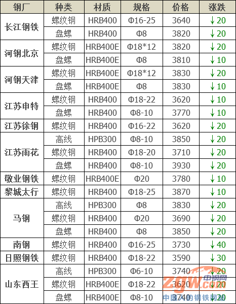 江蘇徐鋼建材價格下調(diào)20元/噸