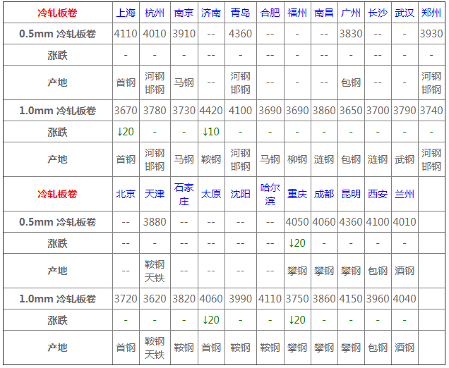4月21日冷軋板卷價(jià)格:穩(wěn)中有降;