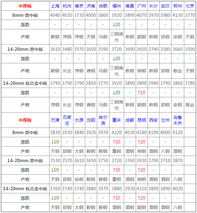 4月21日中厚板價(jià)格:窄幅下調(diào);