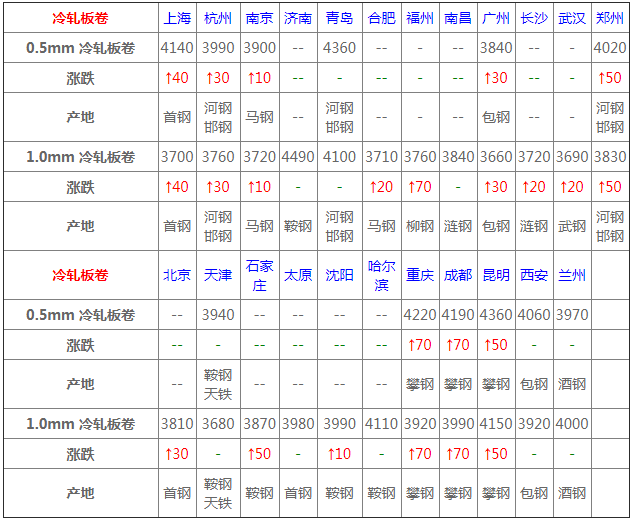 今日市場主流繼續向好,近期的利好較多,對冷軋價格起到一定支撐作用,需求方面,節后需求有所釋放,下游采購積極性提高,商家操作上還是出貨為主,綜合考慮,供需弱平衡,故預計短期冷軋卷板價格高位震蕩。