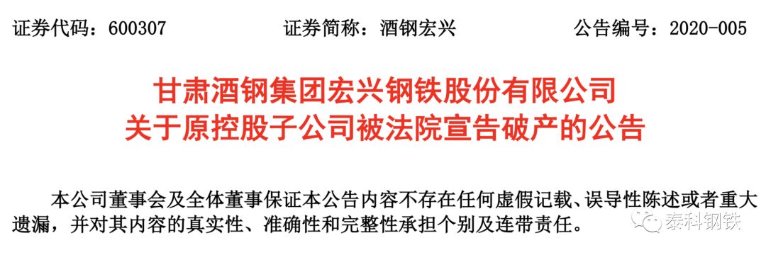 2月28日 酒鋼集團翼城鋼鐵正式宣告破產!