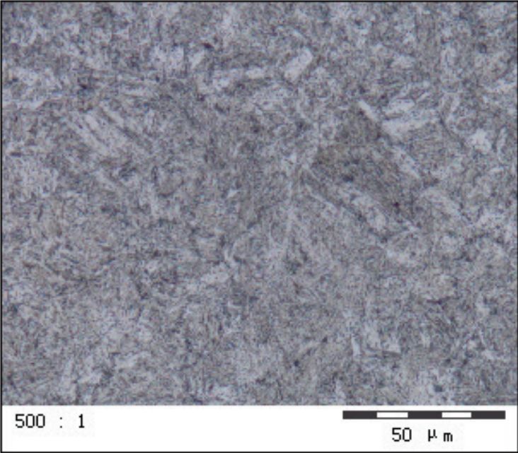 從化學(xué)成分分析結(jié)果可見(jiàn),斷裂螺栓的化學(xué)成分符合GB/T3077—2015中20MnTiB的要求。從裂源及螺栓心部取縱截面試樣,按GB/T13298—2015進(jìn)行制樣,隨后在光學(xué)顯微鏡下觀(guān)察,結(jié)果如下:根據(jù)GB/T10561—2005/ISO 4967:1998(E)中的實(shí)際檢驗(yàn)A法和ISO評(píng)級(jí)圖進(jìn)行評(píng)定:螺栓心部的非金屬夾雜物級(jí)別評(píng)為A0、B0、C0.5、D0.5,材料純凈度較好(見(jiàn)圖9)。螺栓心部顯微組織為回火索氏體+鐵素體,屬正常組織(見(jiàn)圖10)。