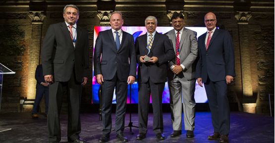 塔塔鋼鐵有限公司的#我們創造明天活動獲獎,代表人上臺領獎-從左到右: T. V. Narendra,塔塔鋼鐵有限公司首席執行官和董事總經理;André Johannpeter蓋爾道執行副董事長,Chanakya Chaudhary, 塔塔鋼鐵有限公司企業服務副總裁;Peeyush Gupta,塔塔鋼鐵有限公司鋼鐵市場及銷售副總裁; Henrik Adam, 塔塔鋼鐵歐洲公司(圖片源自WSA網站)